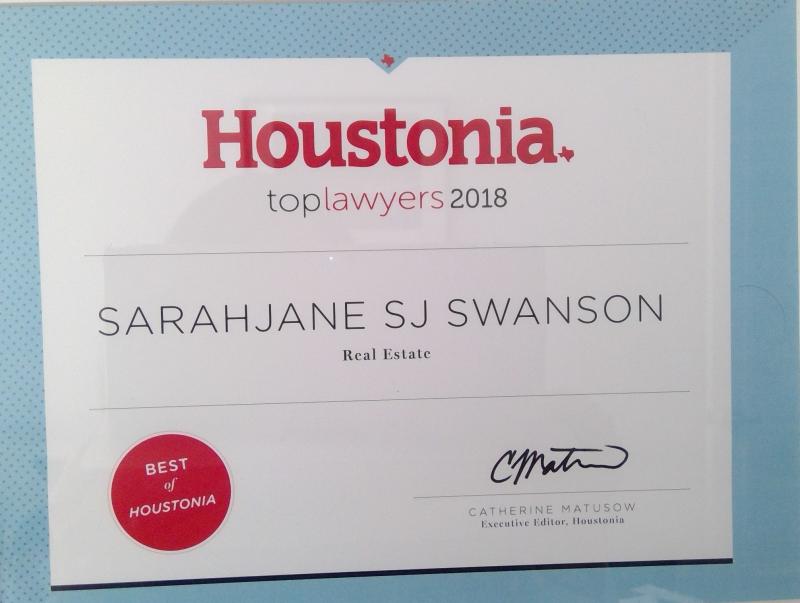 SLF principal SJ Swanson was again named to Houstonia's Top Lawyers 2018 for real estate. This is the fourth time she has recieved this honor.